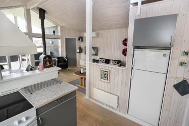 Godt indrettet og optimalt udnyttet hus på 90 m2. 3 dejlige soveværelser (1DS, 1DS, 2ES). Veludstyret køkkenhjørne i en flot grå kontrastfarver og med alt i hvidevare. Der er komfur med glaskeramisk kogeplade, emhætte, mikroovn, opvaskemaskine, køleskab fryseboks samt alt i service/køkkengrej. Åben opholdsstue i forbindelse med køkkenhjørnet med spisebord lige ved køkkenet, pæne lædermøbler, TV med danske og tyske kanaler, CD/Radio og en dejlig brændeovn. Stort badeværelse, hvor samme flotte grå kontrastfarve som i køkkenet går igen. Badeværelset har toilet, håndvask, bruser, spabad, direkte adgang til sauna, vaskemaskine og klinkegulv med gulvvarme. Gæstetoilet ligeledes med toilet, håndvask, bruser og klinkegulv med gulvvarme. Tørretumbler forefindes. Alle soverum samt opholdsrum har flotte trægulve som er nemme at rengøre. Der er installeret varmepumpe i huset. Ikke ryger hus. Husdyr ikke tilladt.