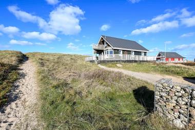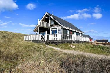 Dette feriehus i 2 etager har en særdeles fremragende beliggenhed – direkte på en høj beliggende klitgrund der går direkte ned til stranden. Tættere på havet og stranden kan man ikke komme. Huset er pænt møbleret og fra 1. sal er der udsigt til klitterne og området. Desuden er der fra den sydvendte terrasse på 1. sal udsigt over området. Fra denne kan du nyde synet af havet og solnedgangen. Ingen udlejning til institutioner kun til familier. Huset er indrettet med bl.a. spabad til 2 personer og sauna. Ønsker du at bo direkte ved havet er dette det perfekte hus for tættere på vandet kan man ikke komme. Gratis internetadgang. Stue: Brændeovn, F-TV med parabol, DVD, stereoanlæg med CD. Køkken: El-komfur, køle-/fryseskab, mikroovn, opvaskemaskine. 4 soverum: 1DS + 1DS + 2S + 2S. Badeværelse: Toilet, bruser, sauna, spa, gulvvarme. Gæstetoilet: Toilet. Vaskemaskine og tørretumbler. Klimaanlæg. Havemøbler og grill. 2 husdyr tilladt. Huset udlejes kun til familier og privatpersoner.