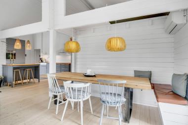 Allerede undervejs ud til dette pragtfulde feriehus, fornemmer man husets fantastiske beliggenhed ved Vesterhavets store klitter. Huset er 123 m2 stort og har 4 dejlige soverum (1DS, 1DS, 1DS, 1DS). I hjertet af huset findes en flot, veludstyret køkken / alrum med alt i service / køkkengrej og alt i hårde hvidevarer. Køkkenhjørnet har bl.a. keramiske kogeplader, indbygnings ovn, emhætte, opvaskemaskine, mikroovn, køleskab med fryseboks. Smart-TV med Chromecast så der er mulighed for streaming af TV / radio / Apps, så har du en mobiltelefon eller et andet device med kan du streame hvad du nu har abonnement. Nyd maden ved spisebordet, kig ud af vinduet og se de store høje klitter direkte ved Vesterhavet eller slap af i de bløde kvalitetsmøbler. eller nyder flammerne ved den hyggelige brændeovn som sammen med den opsatte varmepumpe sørger for et minimalt forbrug til opvarmning. Der er praktiske trægulv alle rum og huset er særdeles rengøringsvenligt.