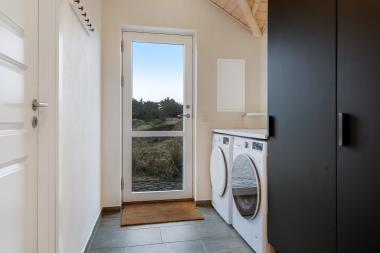 Flot badeværelse med toilet, bruser, håndvask og klinkegulv. Vaskemaskine og tørretumbler er en selvfølge. Ekstra toilet, håndvask, bruser og klinkegulv. Max. 1 husdyr er tilladt. Ikke ryger hus. Har man el-bil eller en Plug-In hybrid, så er der til huset et type 2 ladestik, der kan lade op til 11 kWh – den passer til blandt andet Tesla.