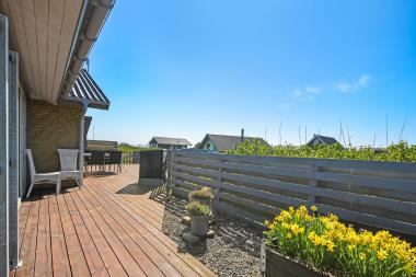 Hust ligger på en ca. 1.000 m2 stor grund. Fra opholdsstuen og fra udestuen er der udgang til et fantastisk, indhegnet terrasseanlæg. Der er fantastisk læ afskærmning af glas så man altid kan sidde i læ samtidig med man nyder udsigten. Der er masser af havemøbler samt 2 liggestole og grill på terrassen. På terrassen er der også lagt flotte pyntesten m.m. og der findes altid en dejlig lækrog samt en plads i solen på dette unikke terrasseanlæg. Nyd en gåtur til Vesterhavet som kun ligger ca. 500m fra huset eller vejen forbi områdets indkøbsmuligheder. Indenfor kort køreafstand nås både den aktive handelsby i Lemvig med flere specialbutikker eller den unikke fiskerby Thyborøn, som udover den aktive fiskerihavn også byder på badestrand og op til flere aktivitetstilbud, som alle er et besøg værd.