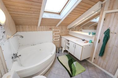 Huset byder velkommen med en lille lys entre. Her er der god plads til familiens sko og jakker. Fra entreen kommer man ind til husets største rum, som består af en kombineret opholdsstue og køkkenet. Køkkenet er veludstyret med glaskeramisk komfur, emhætte, mikroovn, opvaskemaskine og køle-/fryseskab. Her er alt hvad man skal bruge. I stuen er der polstermøbler, fjernsyn med danske og tyske kanaler, DVD- og CD-afspiller. Desuden er der en hyggelig brændeovn, der er med til at varme rummet op – selv på en trist og grå vinterdag. Noget der adskiller dette hus fra andre huse, er den flotte udestue. I udestuen er der også polstermøbler, så her kan man slappe af og nyde ferien. Udestuen er med til at give et godt lysindfald til opholdsstuen og køkkenet. Huset har to badeværelser. Det ene er med toilet, håndvask og bruser. Det andet badeværelse er med toilet, håndvask, bruser spa og sauna. Der er fire soveværelser med to sovepladser i hvert værelse. Tre af soveværelserne har hver en dobbeltseng og det sidste soveværelse har en køjeseng. Desuden er der i huset også et lille rum, hvor der findes vaskemaskine og tørretumbler.