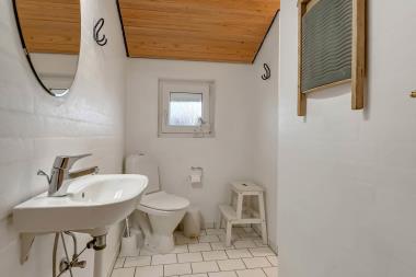 Komfortabelt indrettet feriehus i sten med nedsænket pejsestue med pæne møbler og inventar her der flisegulv. Stuen er indrettet med brændeovn og varmepumpe som begge kan give en behagelig varme og er med til at gøre jeres forbrug billigere, stereoanlæg med CD og TV med DR-kanalerne, der er desuden trådløst internet. Køkkenet som er kombineret med stuen, indeholder glaskeramisk komfur, emhætte, køleskab med 40 l. frostboks, mikroovn og opvaskemaskine. Gulv i køkken og stue er træ. 4 soverum: 1DS + 2S + 2S + 1DS. Huset har 2 badeværelser begge med toilet, håndvask og bruser. Det store badeværelse har desuden en spa og adgang til sauna. Begge badeværelser har klinkegulv og gulvvarme. Til de mindste gæster er der en barnestol. I depotrummet er der vaskemaskine og tørretumbler. Ikke rygerhus. 2 velopdragne husdyr er tilladt. Adgang til Harboøre-Centeret www.harbooere.dk/hallen