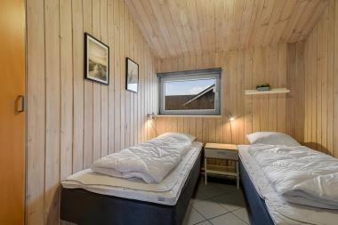 Dette feriehus med egen swimmingpool er beliggende på en naturgrund tæt på Vesterhavet. Huset er bygget i 1991 og er løbende vedligeholdt inde og ude. Der er gynge, sandkasse og legehus til børnene. Stuen fremtræder hyggelig. I poolrummet er der panoramavinduer til 3 sider. Husets indretning er velegnet til 2 familier. Stue: Brændeovn, F-TV med parabol (kun tyske kanaler), stereoanlæg med CD.Bordfodbold. Gratis internetadgang. Køkken: El-komfur, køleskab med frostboks, mikroovn, opvaskemaskine. 4 soverum: 1DS + 1DS + 2S + 2S. Hems: 2 sovepladser. Barneseng og højstol. Badeværelse: Toilet, håndvask, bruser, gulvvarme, sauna. Gæstetoilet: Toilet, håndvask, bruser, gulvvarme. Swimmingpool, spabad, vaskemaskine, tørretumbler. Der er varmepumpe i huset. Poolen opvarmes via varmepumpe. Terrasse med havemøbler og grill.