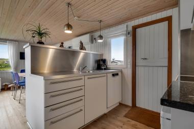 Smagfuldt indrettet feriehus med pæn møblering og dejlig stue med brændeovn og varmepumpe som begge er medhjælpende til at reducere el-forbruget. TV med tyske og danske kanaler samt mulighed for streaming af APP/Radio/TV via Chromecast, som I selv har et abonnement til. DVD, CD og radio. Køkken og stue er med trægulv. Flot køkkenafdeling med alt i service og hårde hvidevarer, glaskeramisk komfur, emhætte, køle-/fryseskab, opvaskemaskine. Pænt badeværelse med toilet, håndvask og bruser og klinkegulv. 3 gode soverum: 1DS, 2S, 1S. der er tæpper i soverummene. Til de mindste børn er der en barnestol. 2 husdyr er tilladt. Ikke rygerhus.