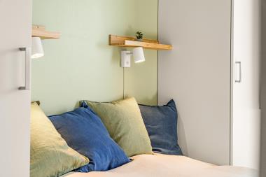 Bemærk det ene værelse med dobbeltsenge findes i husets anneks.