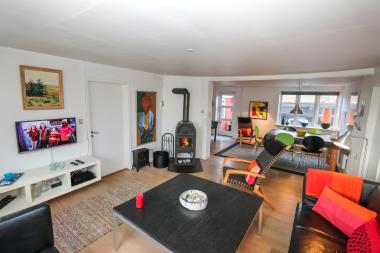 Renoveret, charmerende og velindrettet stenhus på Strandvejen i Vrist med centralvarme. Huset blev bygget i 1920 – men er løbende blevet vedligeholdt og i 2009 blev huset gennem renoveret og der blev lavet en dejlig, fuldt møbleret lejlighed på 1. sal med separat indgang og eget toilet / bad og køkkenhjørne. Huset ligger kun 400 m fra Vesterhavet og har gratis Internetadgang.