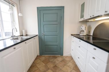 Køkkenet er forholdsvis nyt fra 2008 og har opvaskemaskine, glaskeramisk kogeplader og komfur og køle-fryseskab. Herfra der der adgang til stuen som byder på brændeovn, spisebord samt sofagruppe med sofabord. Herudover er der også et TV med tyske kanaler samt stereoanlæg med CD. Der hører Chromecast til tv’et. Huset råder over 2 soveværelser hvoraf det ene soveværelse er med dobbeltseng og det andet værelse er med 1 køjeseng og en sovesofa til en person.