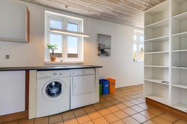 Det flotte og stilrene køkken er udstyret med bl.a. keramiske kogeplader, emhætte, indbygningsovn, mikroovn og et stort køleskab samt fryseboks. Entré, opholdsstue og køkken har alle praktiske klinkegulve. Huset har også et renoveret, dejligt og praktisk bryggers med masser af opbevaringsplads, vaskemaskine og tørretumbler. I stueetagen er der et stort badeværelse med toilet, håndvask, muret bruseniche og klinkegulv med gulvvarme, samt et lille badeværelse med toilet og håndvask.