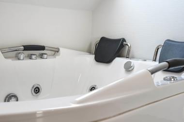 I hjørnet af grunden findes en overdækning med et vildmarksbad, der opvarmes med træ. Der er også en lækker udendørsbruser med både koldt og varmt vand. Huset har desuden en ladestander til el-biler og plug-in/hybrid biler med type 2 stik (11 kwh).