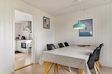 Køkkenet er helt nyt og der er bla opvaskemaskine,køle/fryse skab og mikroovn. I køkkenet findes der spiseplads til 2 personer. Dejligt badeværelse med gulvvarme og brus, badeværelset er med klinker på gulvet. Gæstetoilettet er med klinker, håndvask og gulvvarme. Sommerhuset har også en dejlig sauna. Lofter og vægge er beklædt med træ, ligeledes er gulvet af træ. Sommerhuset har to stuer og den ene er i underetagen hvor der er spisebord til 6 personer samt aktiviteter såsom bordfodbold og billardbord. Den anden stue er ovenpå og her er masser af hygge med fritlagte bjælker og med udsigt til klitterne. Her findes fladskærm med dr 1 samt DVD-afspiller og der er sofa arrangement samt brændeovn. Huset har 3 soveværelser: 1DS + 2S + 1DS. Fra soveværelset ovenpå kan man nyde udsigten udover markene. Der er vaskemaskine i baggangen. Der er installeret varmepumpe i huset og det betyder at du som gæst kan spare en del på din elvarmeregning – varmepumpen leverer op til 4 gange så meget effekt som den bruger, det betyder at for hver kilowatt-time pumpen bruger yder den varme svarende til ca. 4 kW energien udnyttes dermed langt. Udenfor er der anlagt et wellnessrum med et stort spa indeni, så man er i ly for vejret.