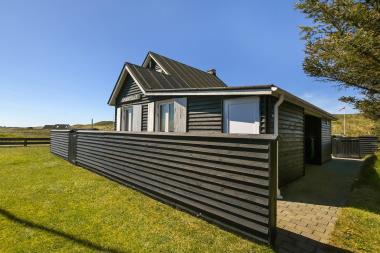 Tæt på Vesterhavet – kun 100 meter fra stranden – ligger dette smukke og velindrettede feriehus i 2 etager på en 1042 kvm. klitgrund. Huset er renoveret i 2009. Dejlig terrasse med havemøbler og grill. Stue: Brændeovn, varmepumpe, F-TV med DR-kanaler og med parabol (kun tyske kanaler). Køkken: El-komfur, køleskab, opvaskemaskine. 3 soverum: 1 DS + 2 enkelt senge + 1. sal: 1 DS – der er håndvask i alle soverum. Ekstra sovesofa i stuen. Badeværelse: Toilet, håndvask, bruser. Ekstra rum med vaskemaskine og tørretumbler. Ikke ryger hus. Gratis internetadgang.