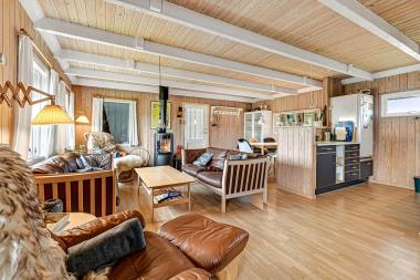 80 m2 stort feriehus med 3 soveværelser. I stueetagen er der 1 soveværelse (2ES) og på første etage er der 2 soveværelser (1DS, 2ES). Kombineret opholdsstue og køkkenhjørne med udsigt til de høje klitter ved Vesterhavet. Dejligt køkkenhjørne med bla opvaskemaskine, komfur med glaskeramiske kogeplader, emhætte, alt i service / køkkengrej og køleskab med fryseboks. Dejlig opholdsstue med lædermøbler, bluetooth højtaler og stejl trappe til 1. sal. Slap af foran den knitrende brændeovn som sammen med varmepumpen hjælper med at reducere udgiften til varmeregningen. TV med danske og tyske programmer samt mulighed for streaming af TV / radio / Apps via Chromecast, så har du en mobiltelefon eller et andet device med kan du streame hvad du nu har abonnement. Spisebordet er praktisk placeret lige ved køkkenhjørnet. Vaskemaskine og tørretumbler forefindes. Barneseng og barnestol til de små beboere. Praktiske hårde gulve i hele huset. Har man el-bil eller en Plug-In hybrid, så er der til huset et ladestik. Ikke-ryger hus. Husdyr ikke tilladt.