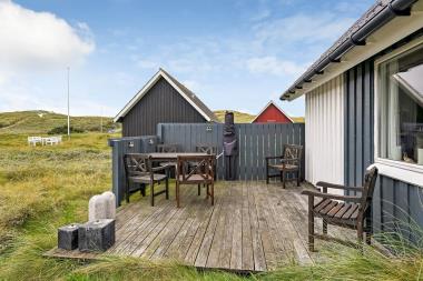 Huset er beliggende på en ca. 1.250 m2 stor naturgrund. Fra opholdsstuen er der adgang til en dejlig terrasse med havemøbler, solvogne og grill som kan flyttes rundt efter behag. Dejligt hus, der er blevet rigtig flot moderniseret med respekt for den gamle stil. Huset ligger tæt ved Vesterhavet, der altid inviterer til en frisk gå- eller løbetur. Områdets købmand har sæsonåbent og ligger ca. 250 m fra huset og som i sæsonen byder på frisk morgenbrød. Her kan de daglige indkøb også klares. Også området madsted ligger ca. 3.000 m fra huset. 10 – 15 km fra huset kan flere aktiviteter og shoppingmuligheder nås. Så hvad enten I er til aktiv ferie eller total afslapning, danner dette feriehus en dejlig ramme både hvad angår hus, beliggenhed og omgivelser.