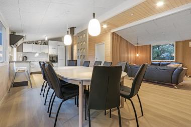 Velindrettet feriehus på 216 m2. 5 dejlige soverum med helt nye senge (1DS+1KS, 1DS+1KS, 1DS, 1DS, 2ES). Derudover forefindes 1 store hems med hver 2 sovepladser. Huset er med et veludstyret nyere køkken alrum med alt i hårde hvidevarer. Stor glaskeramisk plade, emhætte, indbygningsovn, opvaskemaskine, mikroovn, 2 køle / fryse skabe. Alle 12 beboere kan samles om husets store spisebord som også er perfekt til spil og hyggesnak. Slap af i de bløde lædermøbler. Se TV på dansk og tysk på husets Smart-TV med tyske og danske programmer samt mulighed for streaming af TV / radio / Apps, så har du en mobiltelefon eller et andet device med kan du streame hvad du nu har abonnement. Der er trægulve i opholdsrum og gulvtæpper i soveværelserne. Tænd op i brændeovnen som let hjælper med opvarmningen sammen med varmepumpen eller blot sørger for en hyggelig stemning. Fra fordelergangen er der udgang til en totalt privat terrasse med en stor udendørs spa. Aktivitetsrummet indeholder: dart bordfodbold og kombineret pool / billard. Vaskemaskine og tørretumbler er en selvfølge. 2 badeværelser. Det store badeværelse har toilet, bruser, håndvask, gulvvarme samt Wellness- / saunaafdeling med spabad med massagedyser samt dejlig infraød sauna et ekstra toilet med håndvask. Det andet badeværelse har ligeledes toilet, håndvask, gulvvarme og en dejlig bruser. Herudover er der endnu et toilet med håndvask. Til børnene er der barneseng og barnestol. Max. 2 husdyr er tilladt. Ikke ryger hus. Huset lejes ikke ud til ungdomsgrupper