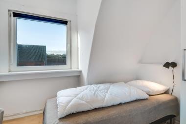 Trappen til 2. sal er er relativ smal/stejl. her ligger de 3 soveværelser: 1DS (160 cm) samt en køjeseng med 2 sovepladser (80 cm bred). 2ES. 2ES og direkte adgang til et mindre værelse med en DS (140cm). Der er masser af skabsplads og kommoder til beklædning. Rygning i lejligheden er forbudt.