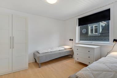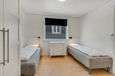 Trappen til 2. sal er er relativ smal/stejl. her ligger de 3 soveværelser: 1DS (160 cm) samt en køjeseng med 2 sovepladser (80 cm bred). 2ES. 2ES og direkte adgang til et mindre værelse med en DS (140cm). Der er masser af skabsplads og kommoder til beklædning. Rygning i lejligheden er forbudt.