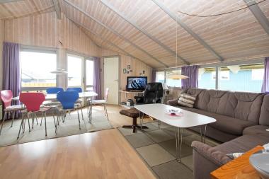 Dette Praktiske feriehus ligger ideelt på en Klit/naturgrund kun 250 m fra Vesterhavet og ligeledes kun 300 meter fra købmand og cafeteria. Ligeledes ligger Ferring Sø kun ca. 200 meter væk fra huset. Gratis internetadgang. Åbent og overdækket terrasse – flot trægulv i stuen – dog vinyl i køkkenet. Køkken med opvaskemaskine og mikroovn kombineret med stue med pæne møbler. Parabol dog kun med tyske kanaler. F-TV med parabol, stereoanlæg med CD, DVD Lækker badeværelse bla. med bruseniche – gulvvarme samt 2 personers spabad og direkte adgang til sauna. Vaskemaskine og tørretumbler. 3 soveværelser: Dobbeltseng + dobbeltseng + 2 enkeltsenge . Huset er omgivet af 2 terrasser, så man kan altid finde læ og nyde solen. Havemøbler, gynge og sandkasse. Adgang til Harboøre-Centeret. Husdyr er tilladt